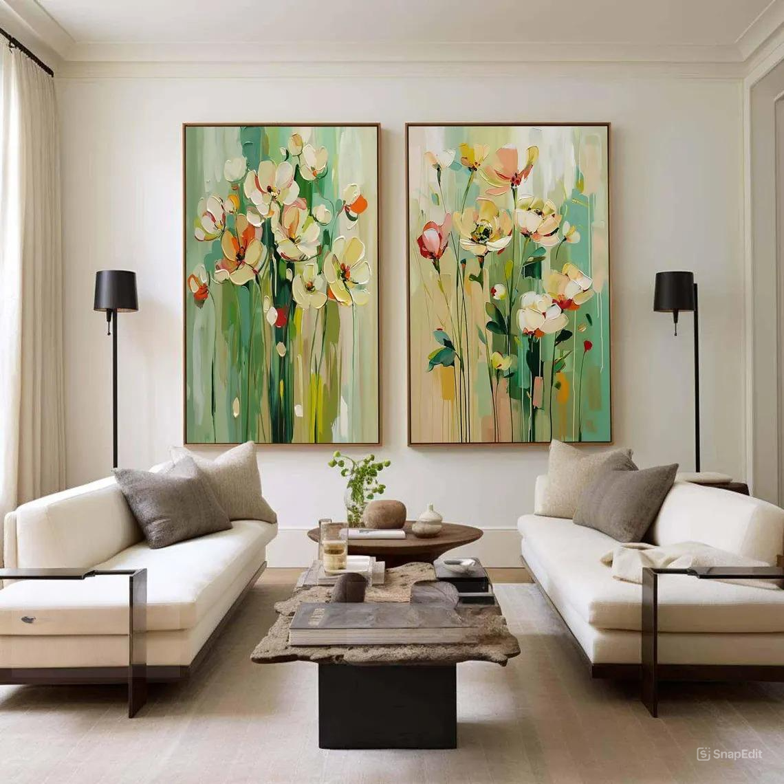 لوحة من الفن التجريدي مكونة من 2 لوحات مطبوعة - لوحة فنية ثنائية عالية الجودة