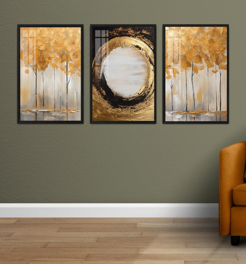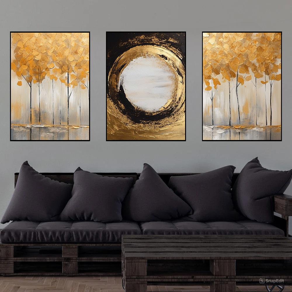 لوحة من الفن التجريدي مكونة من 3 لوحات مطبوعة - لوحة فنية ثلاثية عالية الجودة
