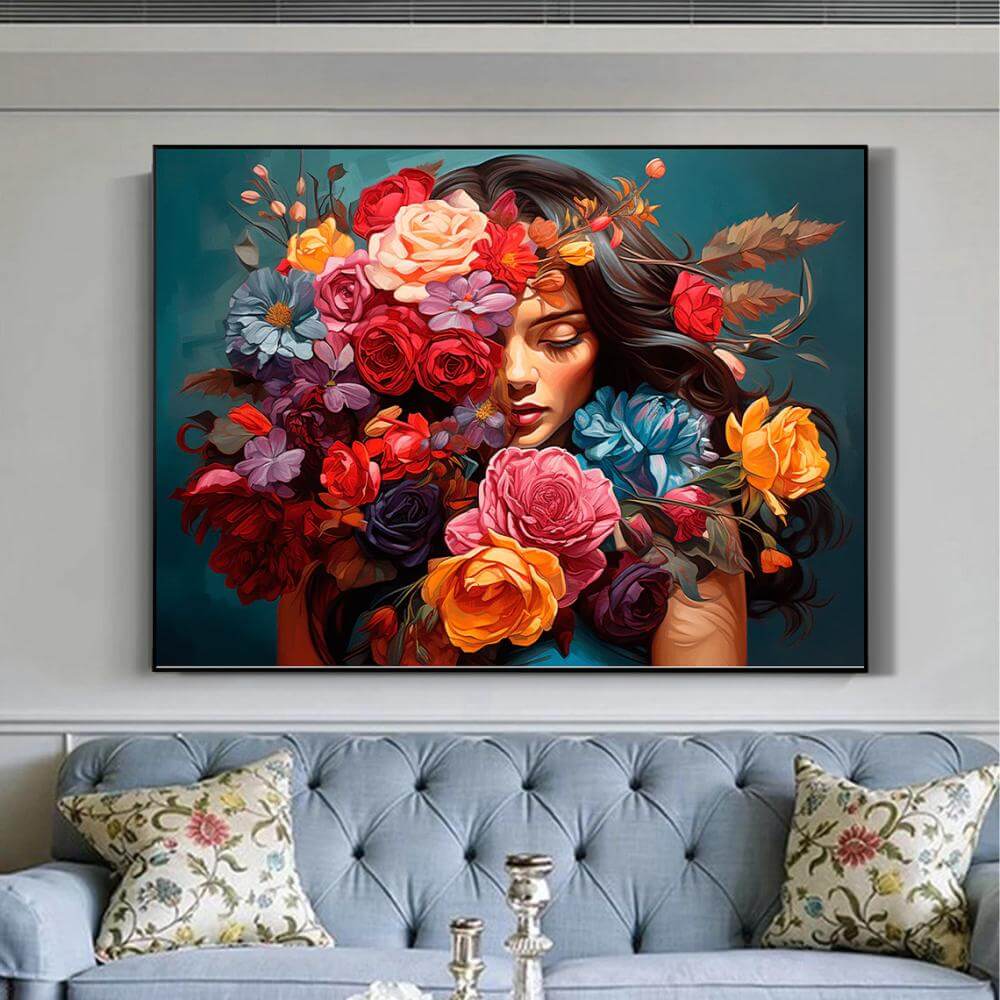 • الألوان: مزيج متناغم من الألوان المتجانسة، يعزز من جمال اللوحة ويتناسب مع معظم الديكورات.